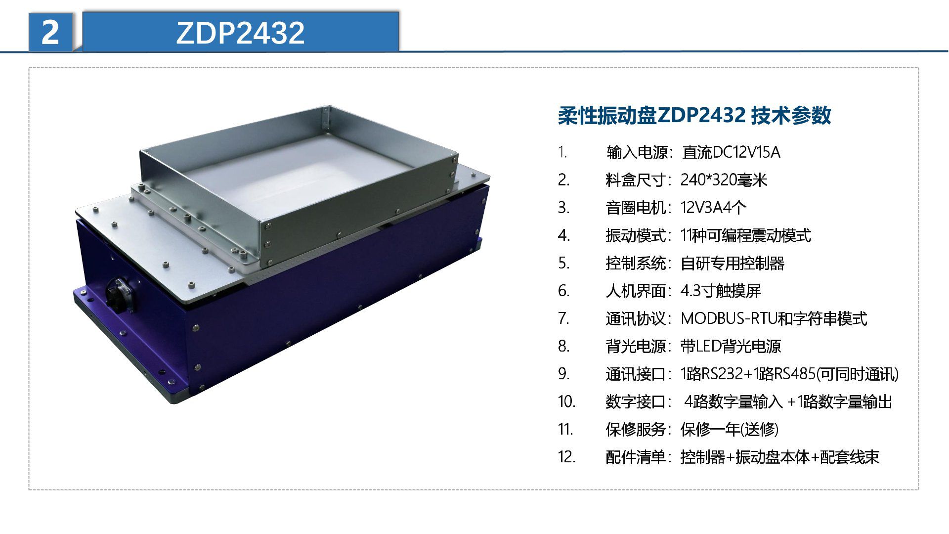 鼠標(biāo)按住圖片可看放大效果柔性振動(dòng)盤(pán)ZDP2432 料盒尺寸240*320毫米